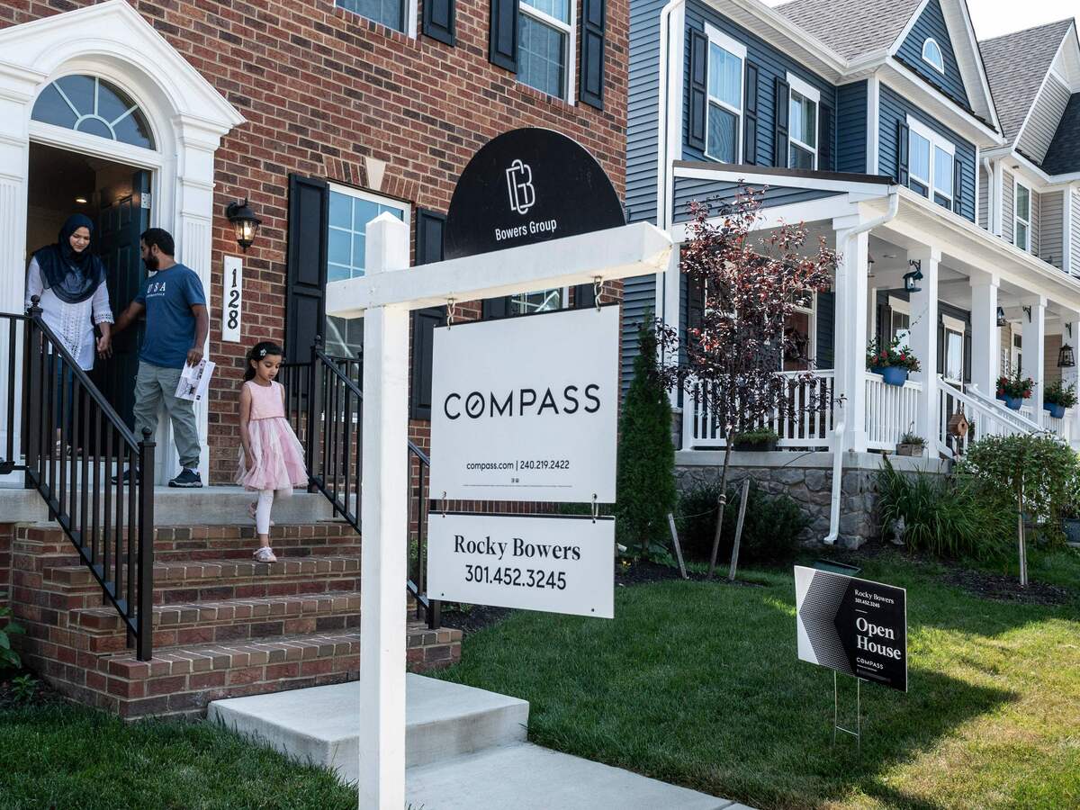 Prospective home buyers leave a property for sale during an Open House in a neighborhood in Clarksburg, Md. on September 3, 2023. The new real estate commission structure could mean buyers have to pay more out-of-pocket fees starting in July.